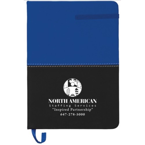 PU color block, hard bound journal. Color matching ribbon page marker. 80 sheets of white lined pages. Elastic closure.